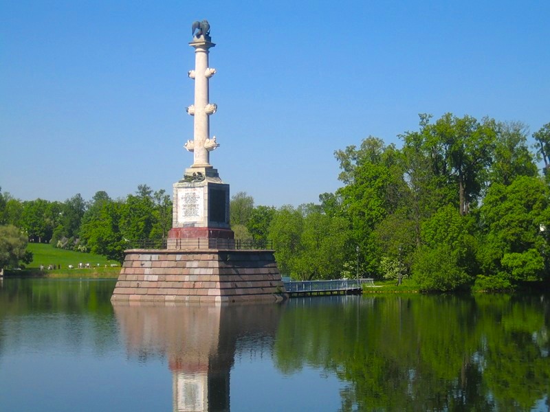 Этот один из символов доблести и непобедимости российского флота (сражение и победа России в Чесменском сражении во время Русско-Турецкой войны 1768-1774 годов) гордо возвышается над Большим прудом Екатерининского парка, который находится в Государственном музее-заповеднике "Царское Село" под Санкт